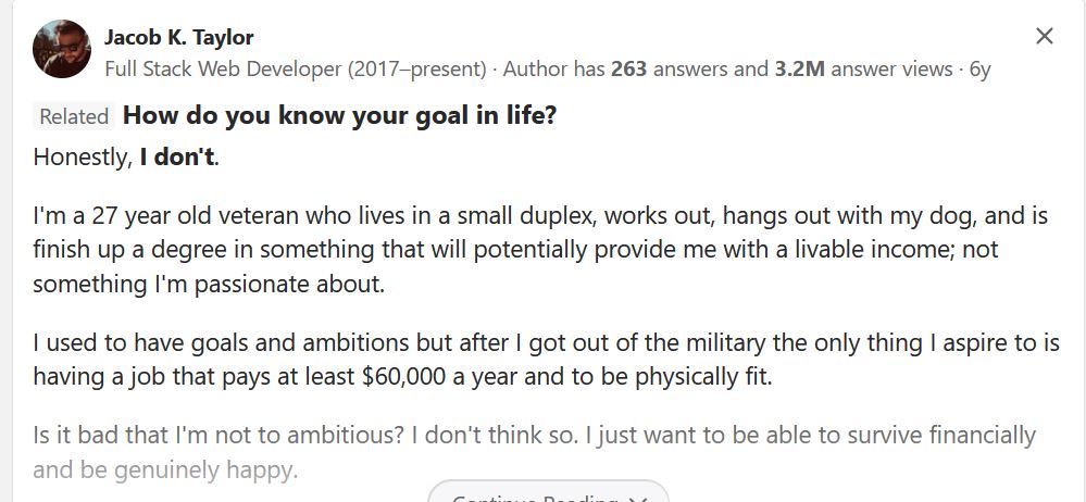I asked one of my colleagues yesterday, and a couple of people I met in town here, and the consensus of the average American seems to say the goal of life is: