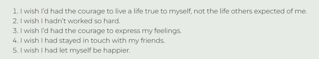 The Five Regrets of the Dying,, According to Bronnie Ware:
